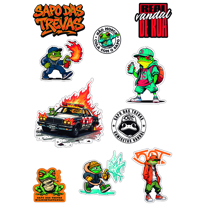 Cartela A4 com 10 adesivos exclusivos da linha VANDAL x Sapo Das Trevas.